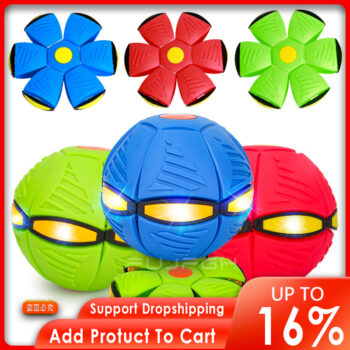 Flying flat ufo play disc ball with led light flying toy saucer ball deformation football kids outdoor sports toy ball