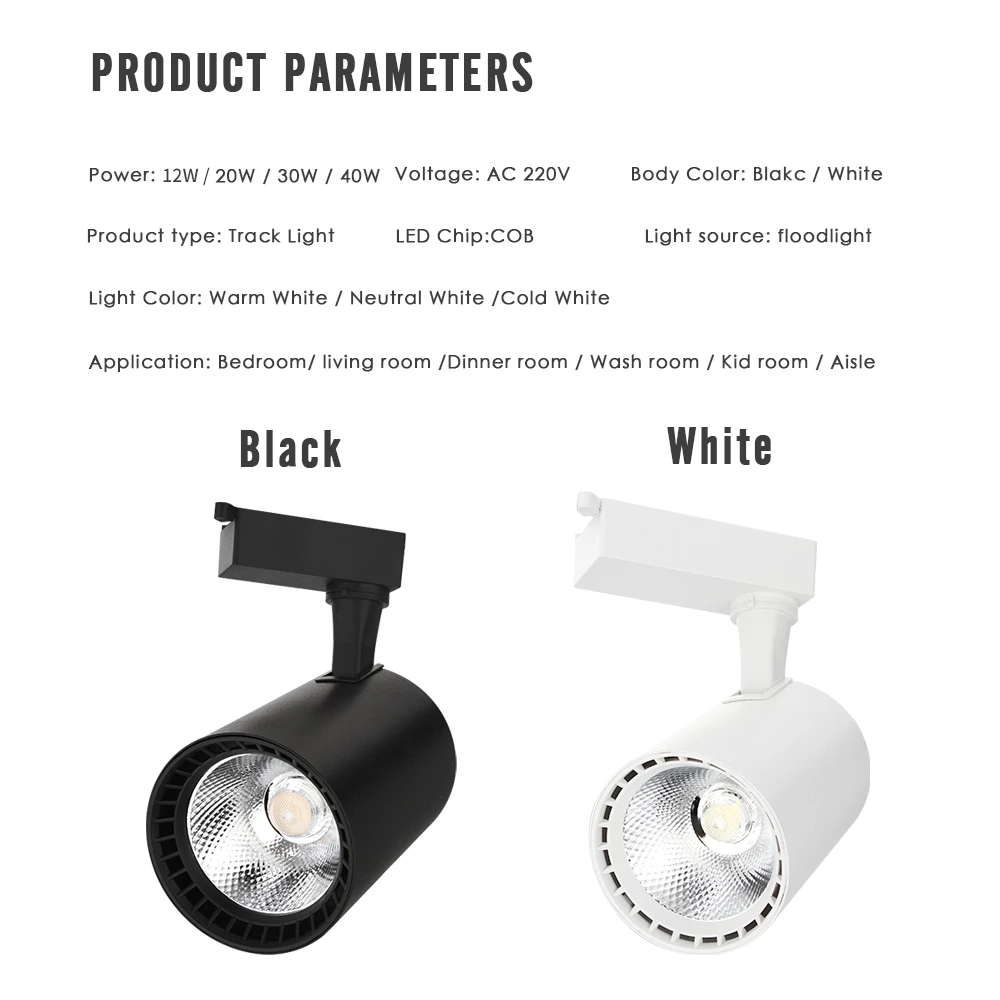 LED Track Light Adjustable Rotate Spot Lamp COB 20W 30W 40W Lighting Clothing Store Living Room Showroom Display 220V