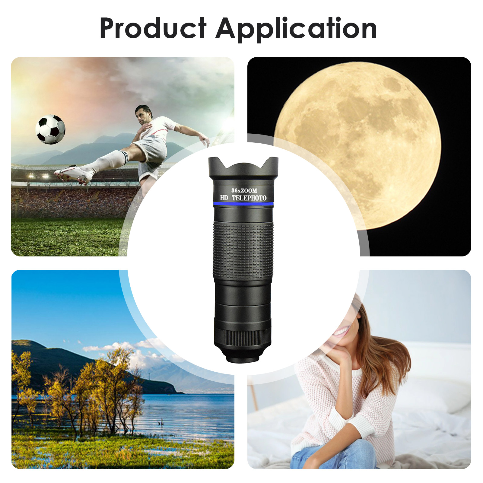 Phone Camera Lens 36x HD Telephoto Lens With Tripod Eyemask Storagebag Clip-On Lense For Most Smartphone Tablet